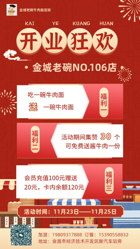 2023年11月份金城老碗牛肉面NO.106店盛大開業(yè)啦!